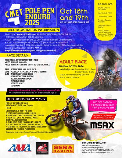Adult Race - Sign-up Saturday 5PM to 7PM & Sunday 6AM to 8AM